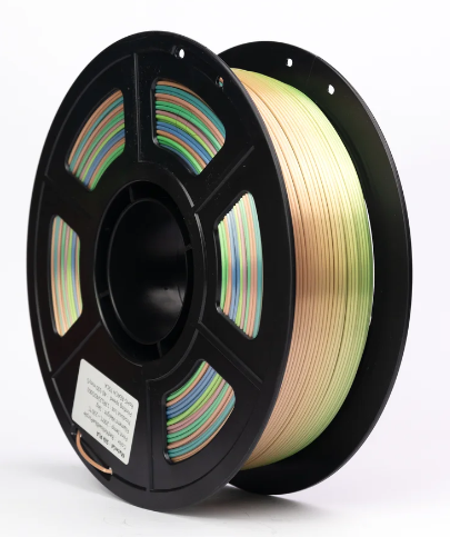 Filamento PLA Silk Rainbow de alta qualidade desenvolvido para impressoras 3D FDM/FFF, com diâmetro de 1,75 mm e rigoroso controle de tolerância, garantindo extrusão uniforme, excelente definição de camadas e acabamento superficial premium. Possui efeito Silk (alto brilho/acetinado) com transição contínua de cores Rainbow, criando variações visuais dinâmicas ao longo da impressão que valorizam superfícies curvas, detalhes geométricos e peças artísticas, resultando em um visual chamativo e sofisticado.